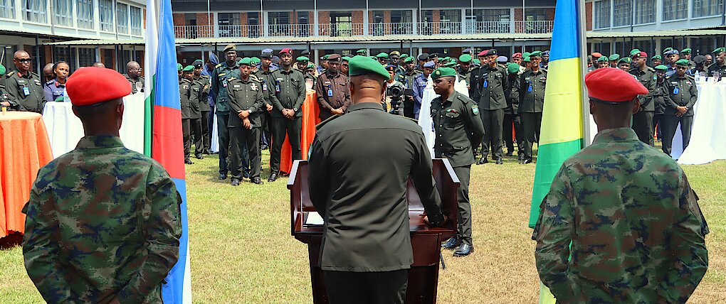 On behalf of the College Commandant and the College fraternity, the Deputy Commandant & Chief Instructor Brig Gen Jean Chrysostome NGENDAHIMANA said in his speech… “Today we have gathered here to celebrate a day of great significance for every Central African. On this day, August 13th we remember the sacrifices of the freedom fighters and honor their dedication and courage, which led to the birth of free and independent Central African Republic in 1960 after several years as a French Colony. It is therefore with great joy and honour that, I wish the people of CAR, particularly Maj Bienvenu DAMA here with us a very happy Independence Day”.