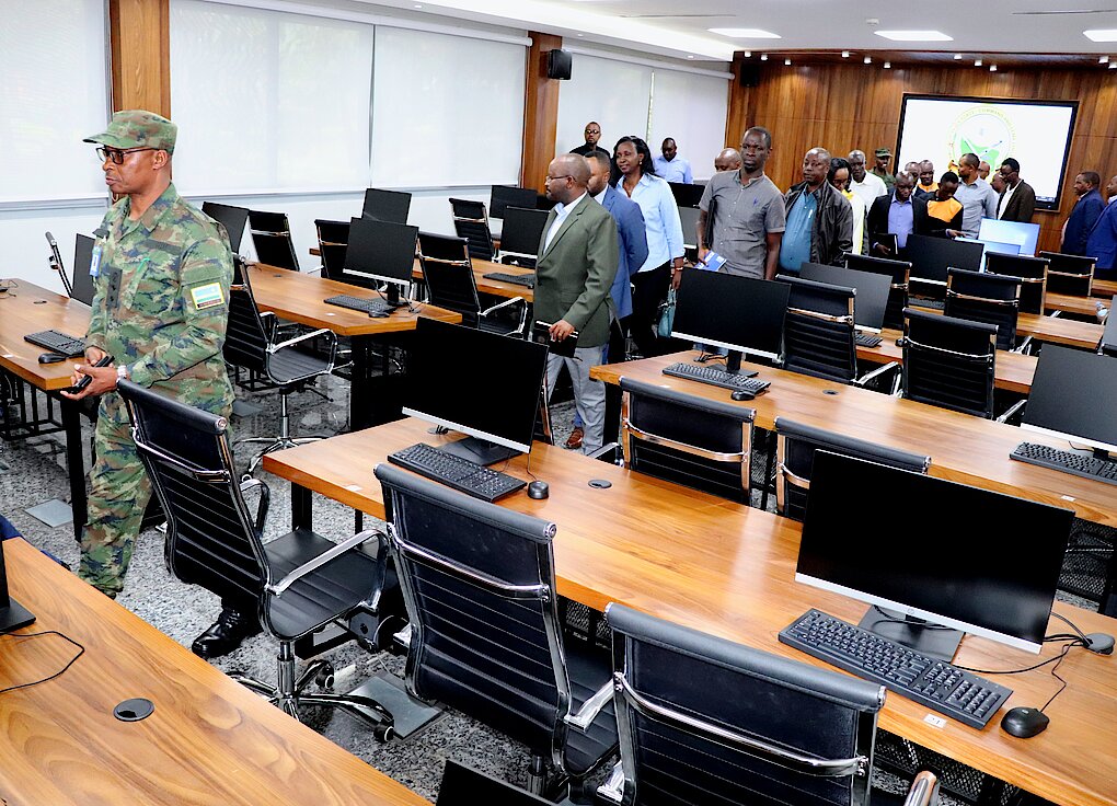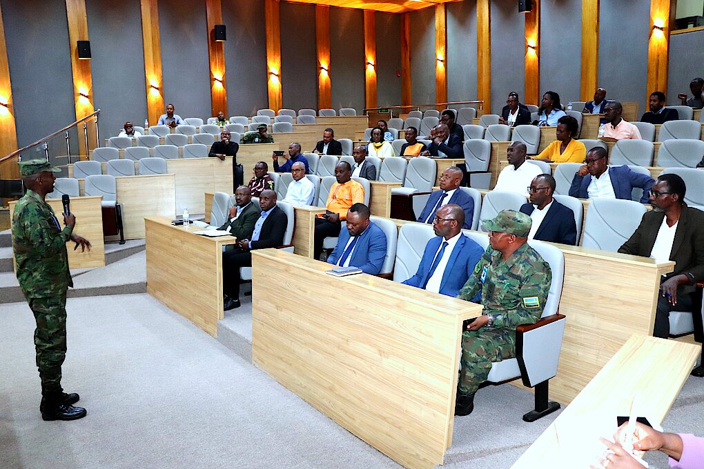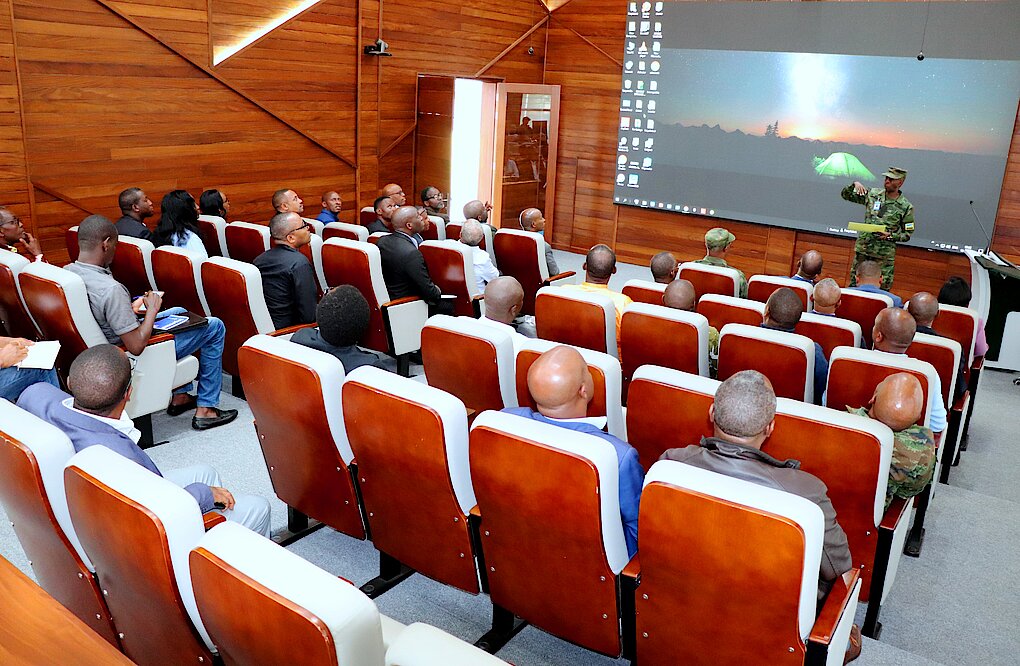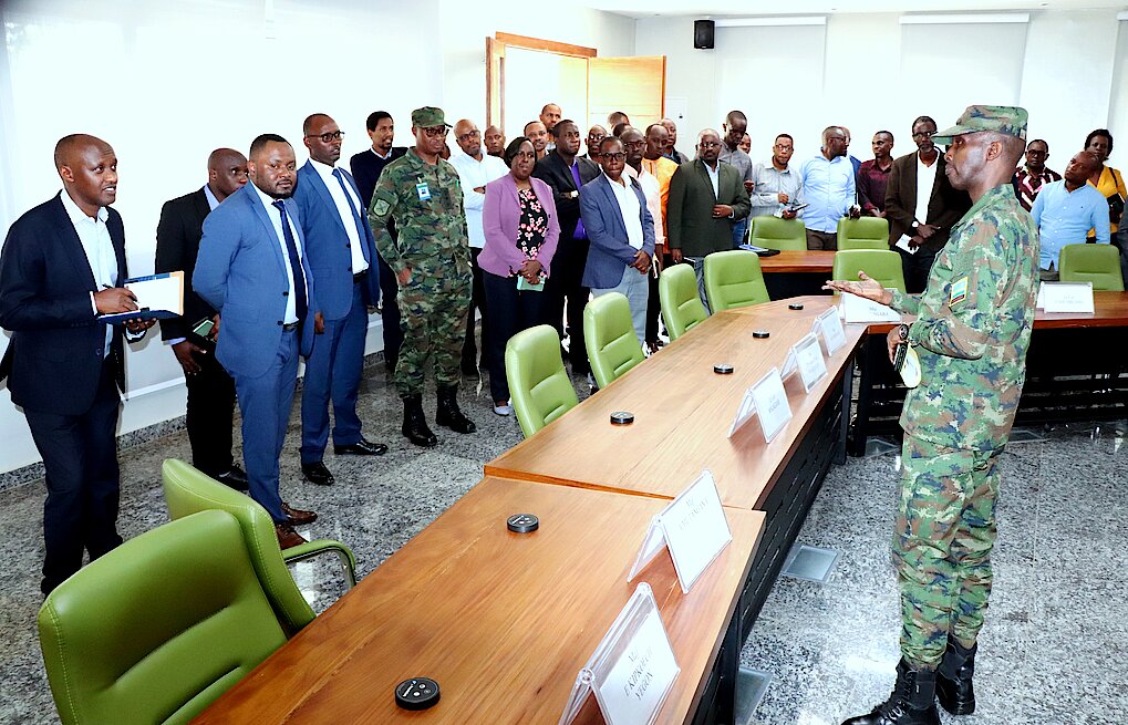 On 16 August 2023, a delegation from the University of Rwanda (UR) led by the Vice-Chancellor (VC) Dr. Kayihura Muganga Didas, visited Rwanda Defence Force Command and Staff College (RDFCSC) to benchmark on the achievements made by the College towards becoming a smart training institution. arrival at the College, the delegation of 40 people was welcomed by the College Deputy Commandant Col JC Ngendahimana who later briefed them on the college activities, emphasizing on the “Smart College” infrastructure development and progress. After the brief, the visitors toured the college premises and facilities.