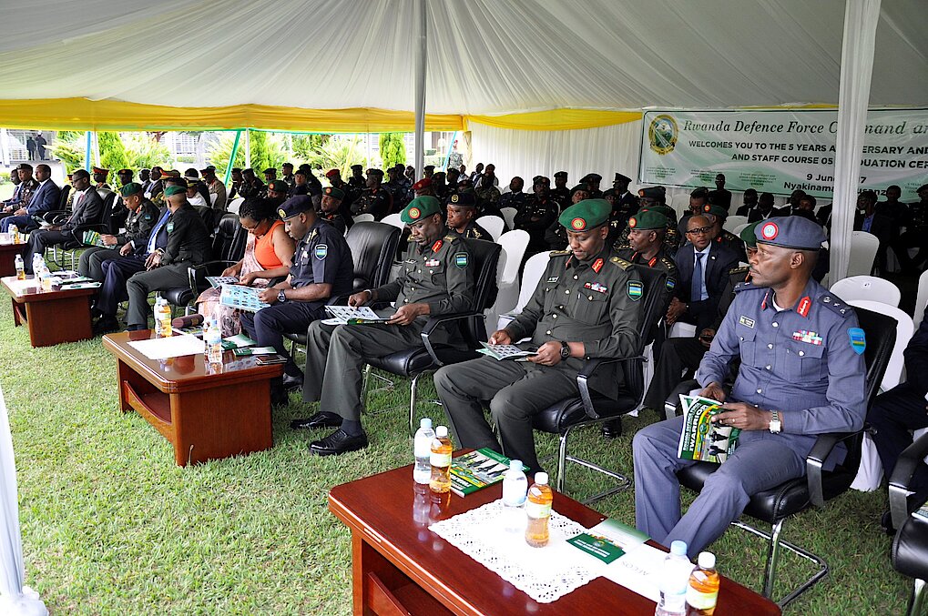 Other dignitaries present included Hon Minister of Education, Dr Musafiri Papias Malimba; Hon Minister of Agriculture and Animal Resources, Geraldine Mukeshimana; the RDF Chief of Defence Staff, Gen Patrick Nyamvumba; the Governor of Northern Province; Ambassadors of foreign missions in Rwanda; Inspector General of Police, Rwanda National Police; Commissioner General, Rwanda Correctional Service; RDF Service Chiefs; the Vice Chancellor of the University of Rwanda; Commandants and Representatives of sister Staff Colleges; Generals; Senior Officers and Spouses of graduating officers.