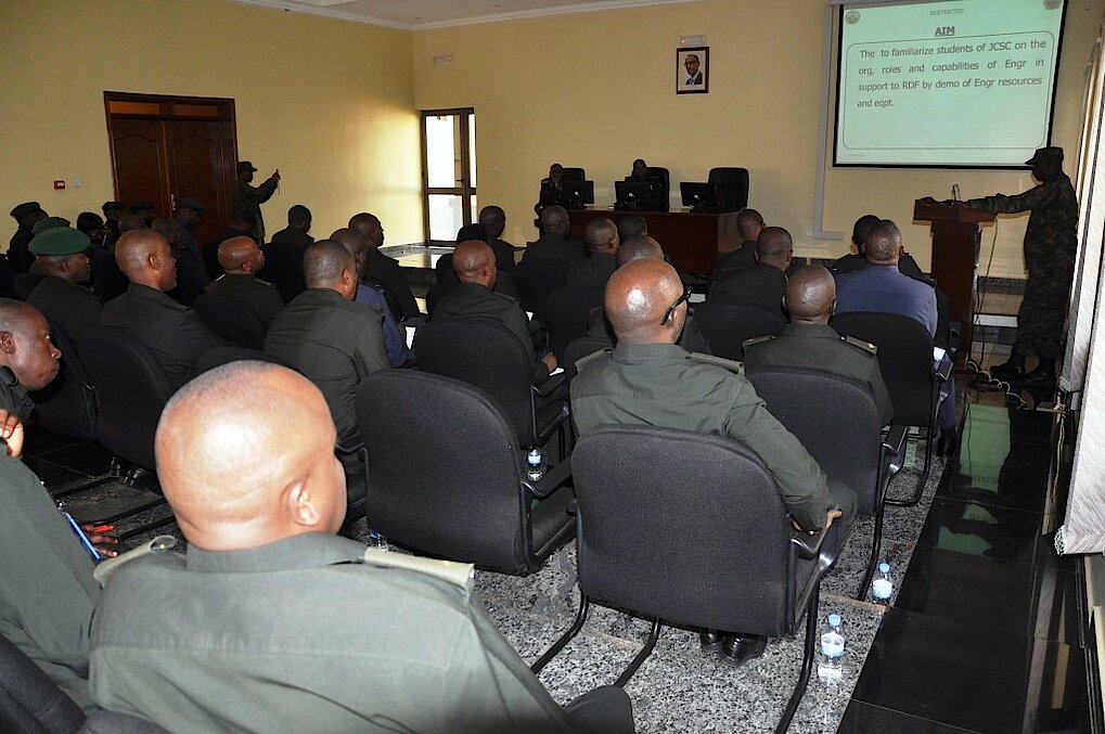 The purpose of the visit was to familiarize the students of JCSC 08 with the roles, organization, capabilities, and limitations of Rwanda Air Force and Combat Support Arms (Mech Div, Arty Div, and Engr Bde) in support to RDF Maneuver Forces, through firsthand briefings and physical demonstration of assets and equipment.