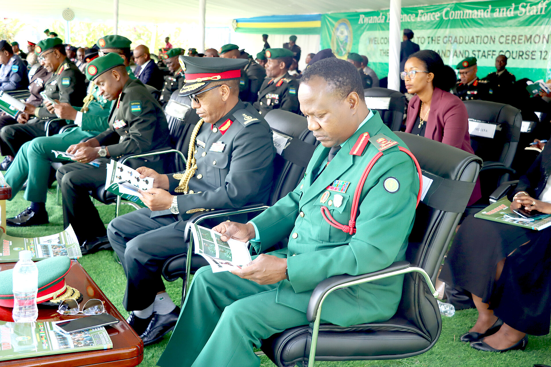 “On behalf of the Rwanda Defence Force Command and Staff College fraternity, it is my distinct honor and privilege to welcome you all to the graduation ceremony of the Senior Command Staff Course 12 here at the Rwanda Defence Force College. Today marks a significant milestone in the career progression of our graduating officers, as they have successfully completed the course and stand on the cusp of assuming greater responsibilities. We are very honored by your presence. Those who have come from within Rwanda and abroad are highly appreciated” Commandant’s remarks on the graduation ceremony of SCSC12” Brig Gen A Nyamvumba said.