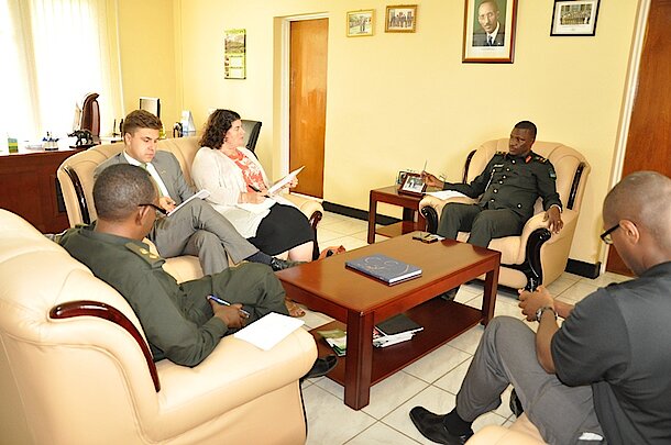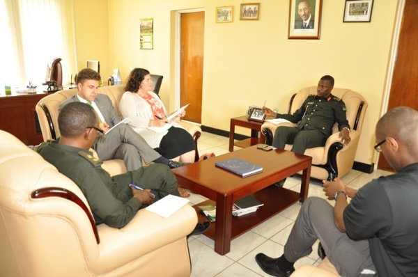 Today 30th July 2015, the RDFCSC received Dr Jessica Piombo, an Associate Professor in the Department of National Security Affairs at the Naval Postgraduate School (NPS) in California – USA. Dr Piombo was accompanied by a team of 2 US military officers and 1 staff from the US Embassy in Rwanda. At her arrival at the college, she was received by the Commandant, Brig Gen Charles Karamba and after their meeting; the delegation was given a tour of the college. Dr Kiambo teaches courses on African politics, U.S. Foreign Policy, comparative politics, and ethnic politics and conflicts.