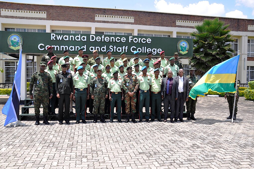 A delegation comprises of 34 Students Officers, from Botswana conducted a Geo Strategic Study Tours in Rwanda from 22 to 29 September 2018 for the purpose of exposing their students as well as College Staff on what Rwanda is doing, to learn and share experience that can take both Botswana and Rwanda forward. As it was part of a week study tour to Rwanda, the faculty staff and student officers from Botswana Defence Force Command and Staff College led by Col Mompoloki Marks Nkgapha, visited Rwanda Defence Force Command and Staff College (RDFCSC) on 26 September 2018.