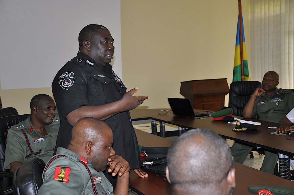 A delegation of 16 Senior Officers, comprising students and faculty members from the Nigerian National Deffence College (NDC) led by Brig Gen BN SALAMI visited Rwanda Defence Force Command and Staff College (RDFCSC) on 18 May 2017. The visit was part of a five days study tour to Rwanda from 16 - 20 May 2017, aiming at cementing NDC students’ understanding of intra-Africa cooperation for sustainable peace, security and social economic development.