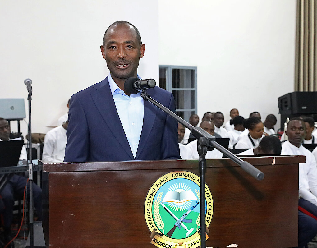 The Guest of Honour for the occasion was the RDF Army Chief of Staff (ACOS), Lt Gen M Mubarakh. Other distinguished guests to the graduation dinner included Governor of Northern Province, 2 Div Commander, the Chief Js from RDF HQ, Region Reserve Force Commander Northern Province, Director Rwanda Peace Academy, RDF Spokesperson, representative of Commandant of National Police College, spouses and family relatives of both students and faculty.