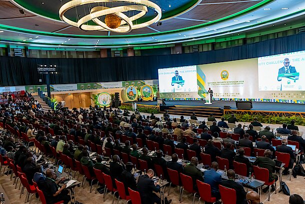 In his opening remarks, the Minister said “This symposium offers a golden opportunity to engage in fruitful discussions, analyze current trends, share best practices, and collaborate on innovative approaches to address the multifaceted security challenges facing our continent today and build a more secure and sustainable future for all. I am confident that the diverse expertise and perspectives represented in this symposium will enrich our discussions and contribute to the development of innovative strategies to enhance the much-needed peace and security on our continent”.