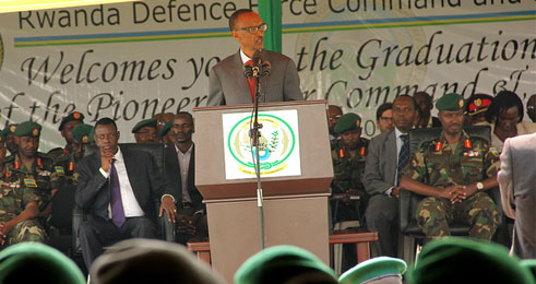 Officiating the graduation ceremony for the 45 students that form the first graduating class of the RDF Command and Staff College, President Kagame emphasized the core values of Rwanda Defence Forces that should be upheld by all :