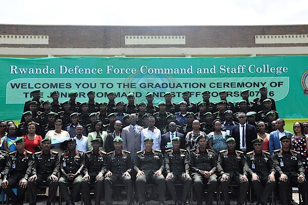 The Rwanda Defence Force (RDF) Chief of Defence Staff (CDS), Gen Patrick Nyamvumba on 27 May 2016 presided over the graduation ceremony of 39 RDF officers completing the Junior Command and Staff Course, Intake Seven (07/16). The ceremony took place at the RDF Command and Staff College (RDFCSC) Nyakinama, in Musanze District.