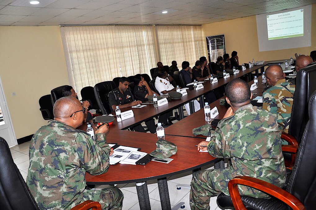 The SDSCSC visiting delegation was briefed on the vision, mission and organization of RDFCSC and more specifically, the Junior and Senior Command and Staff Courses.