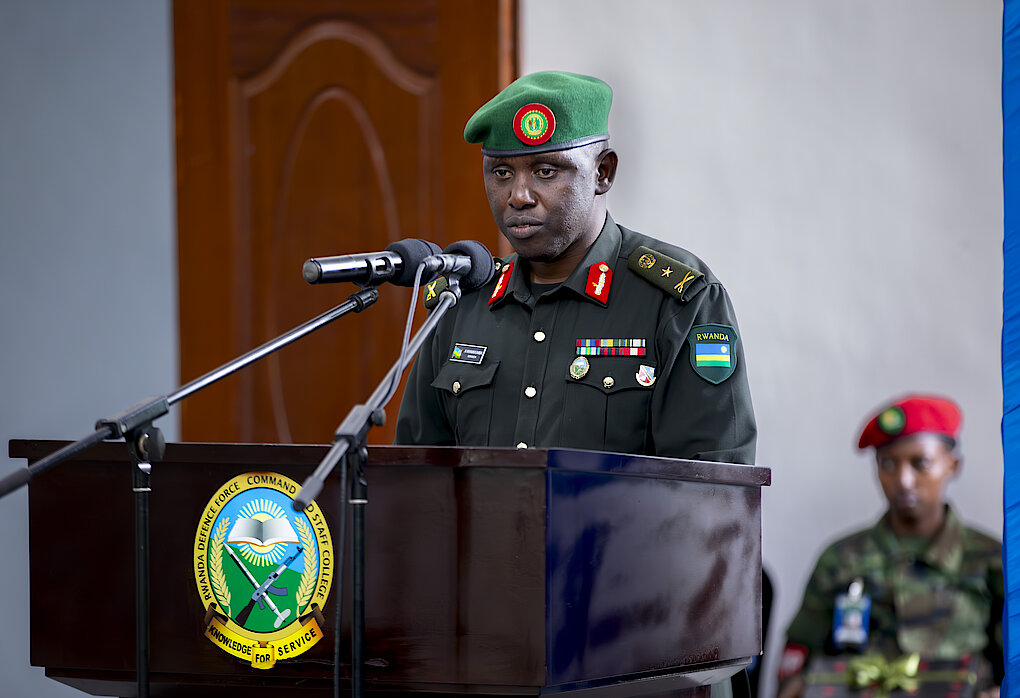 Thirty-eight officers of the ranks of Major and Captain, including 3 female officers, of the Rwanda Defence Force (RDF) and two officers of the rank Superintendent of Police and of Chief Inspector of Police (RNP) successfully completed a Junior Command and Staff Course Intake Twenty one (21/23). The ceremony took place at the RDF Command and Staff College in Nyakinama, Musanze District. The Rwanda Defence Force (RDF) Army Chief of Staff, Maj Gen V NYAKARUNDI presided over the graduation ceremony
