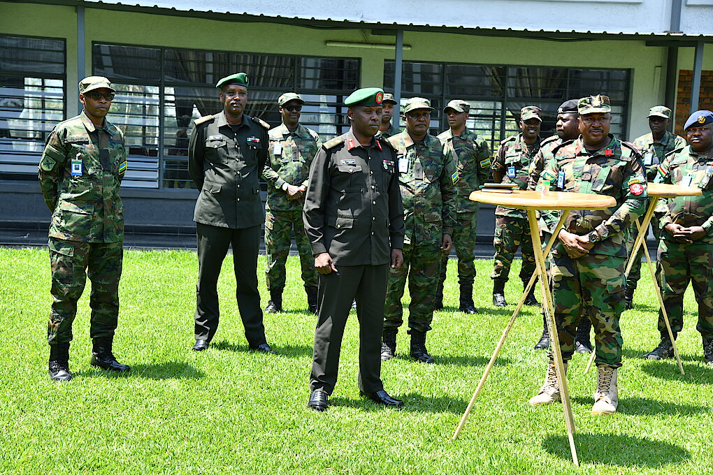 Brig General A. NYAMVUMBA, the faculty members, and RDFSCSC 12 showed their respect for the National Anthem by honoring the flags of both Countries