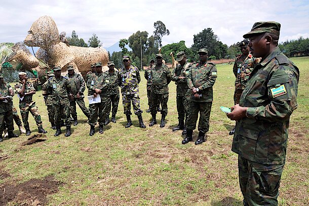On Friday 14 September 2018 from 0800 to 1300 Hours, students of the Senior Command and Staff Course (SCSC) 07 accompanied by Rwanda Defence Force Command and Staff College (RDFCSC) faculty, visited 305 Brigade Tactical Headquarters in the field in Kinigi to physically see the layout and responsibilities of various elements of a Bde HQ in the field.