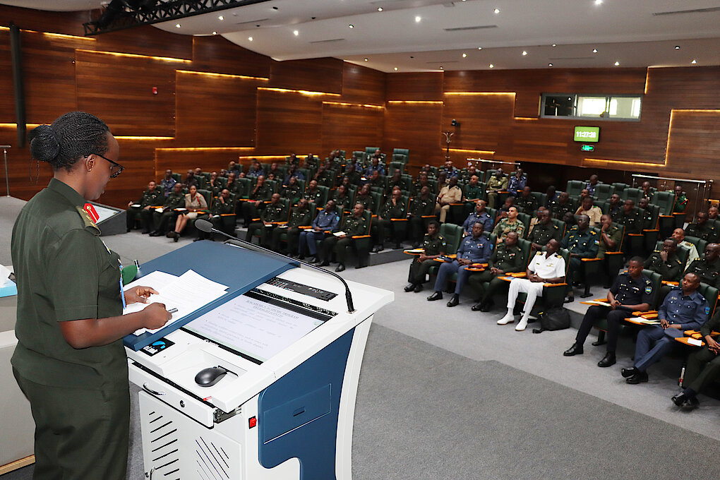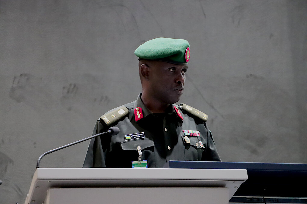 Col LI NSENGIMANA, Head of Academics Department, giving the Academic Brief.