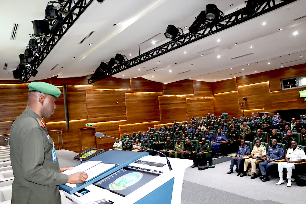 Col V AKILI, Course Coordinator Senior Command and Staff Course giving his Brief.