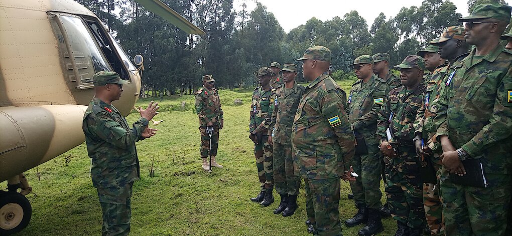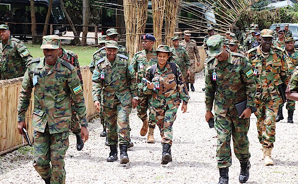 On Monday 26 September 2022 from 0800 to 1300 Hours, students of Senior Command and Staff Course 11 accompanied by the Deputy Commandant Col JC Ngendahimana and the faculty members visited 503 Brigade Tactical Headquarters in Kinigi, Musanze district. The visit was conducted in order to expose students on the layout and responsibilities of various elements of a Bde HQ in the field.