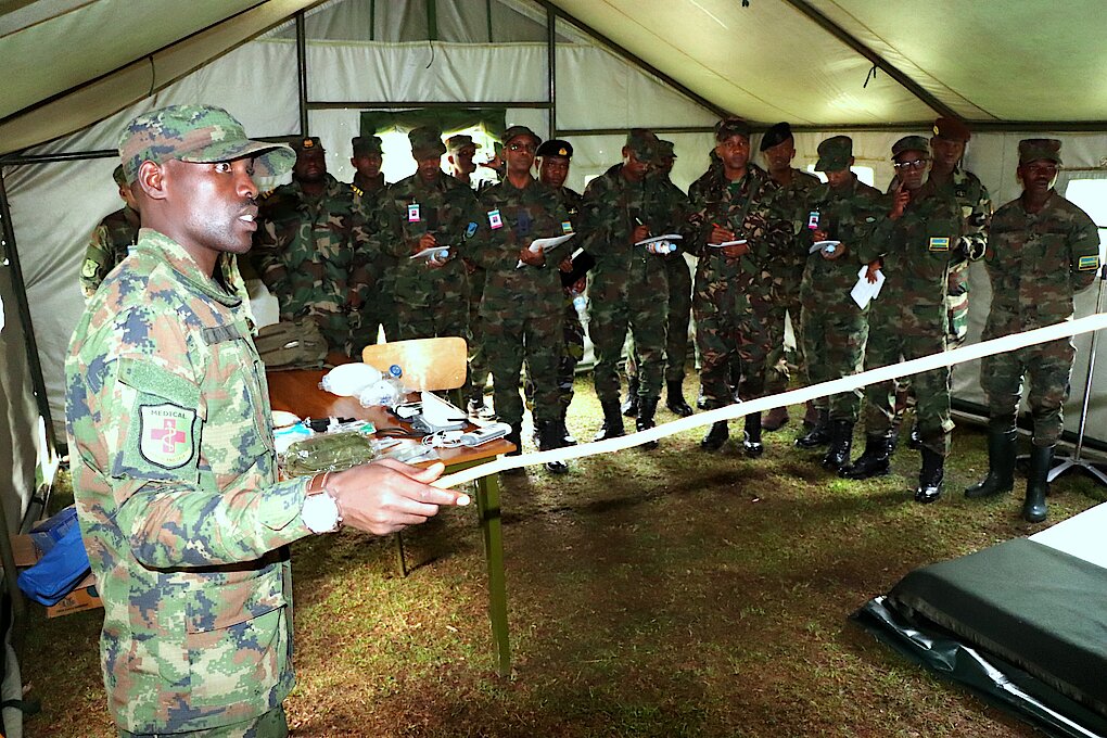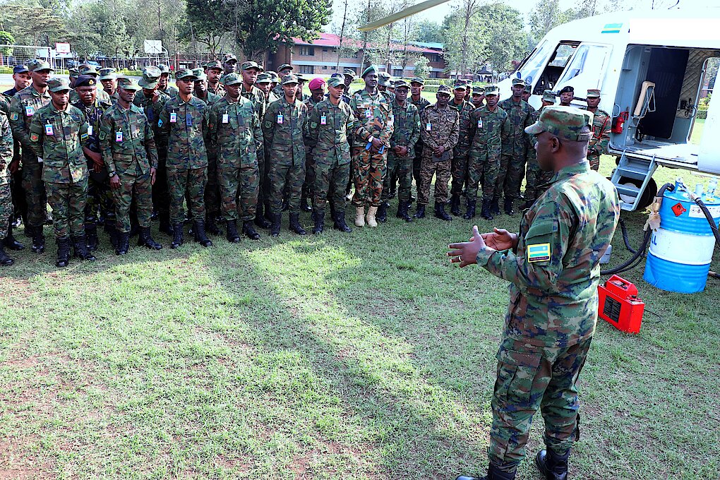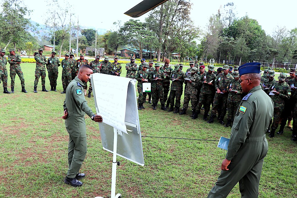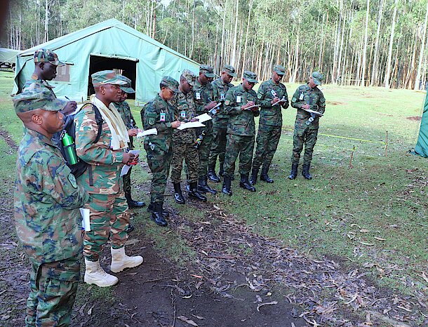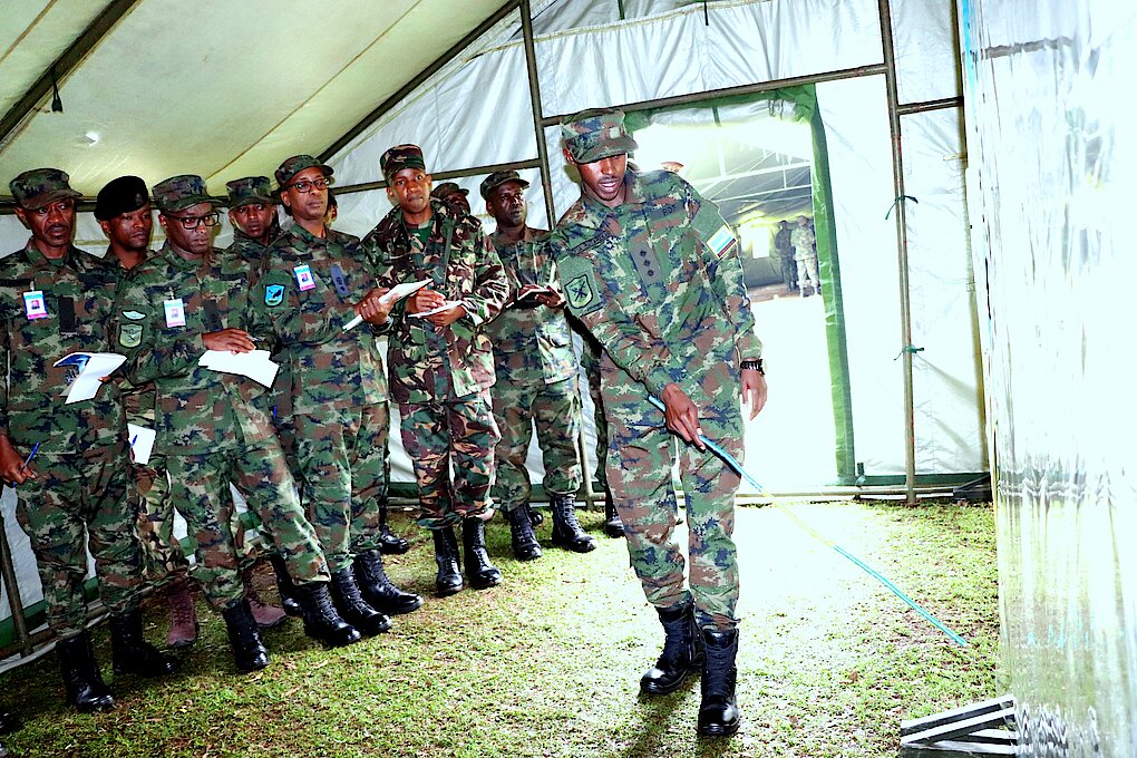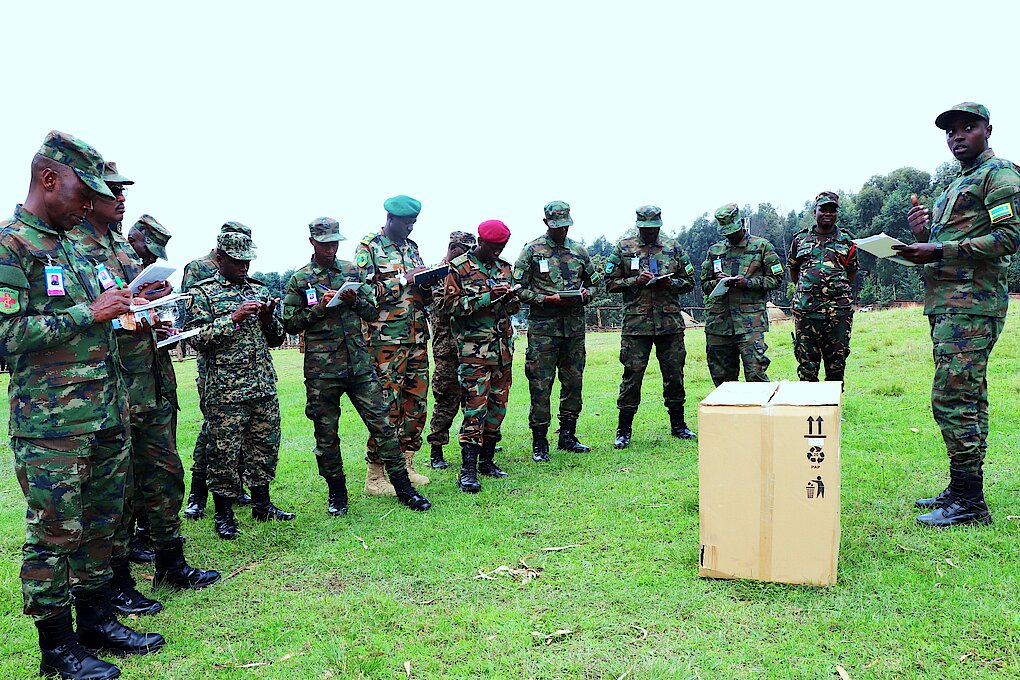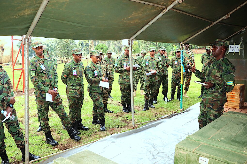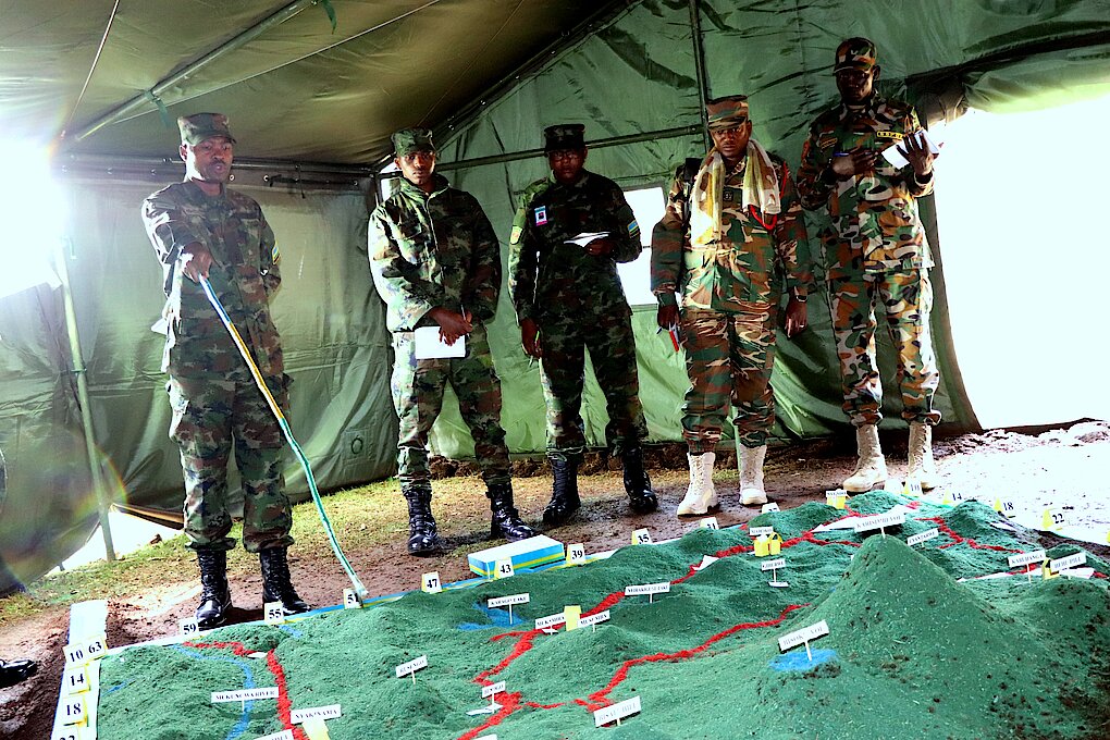 The RDFCSC visiting delegation was welcomed by Col E NDAYIZEYE, 415 Bde Comd, who briefed the delegation on the layout of the Bde Tac HQ