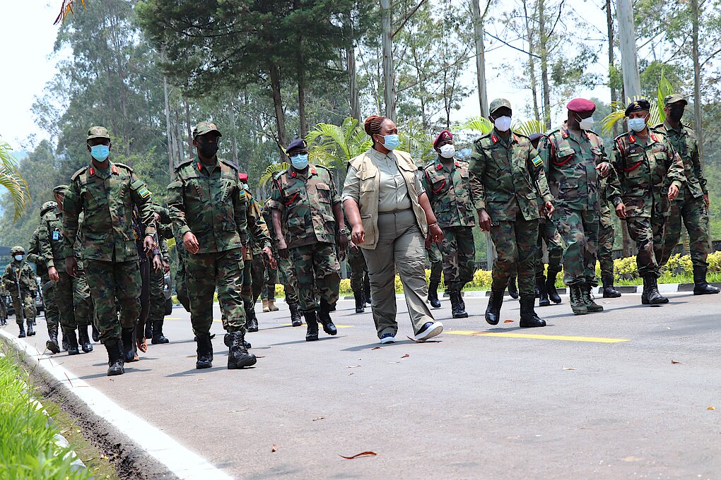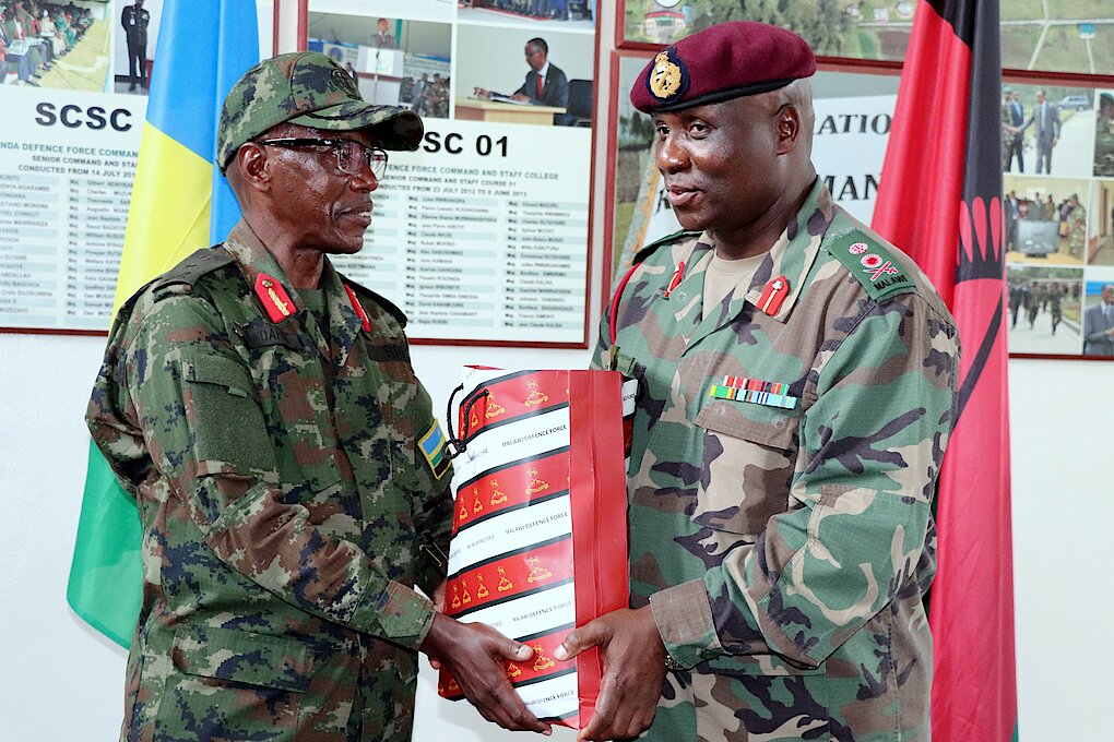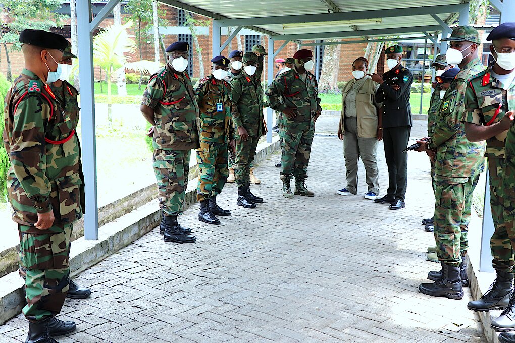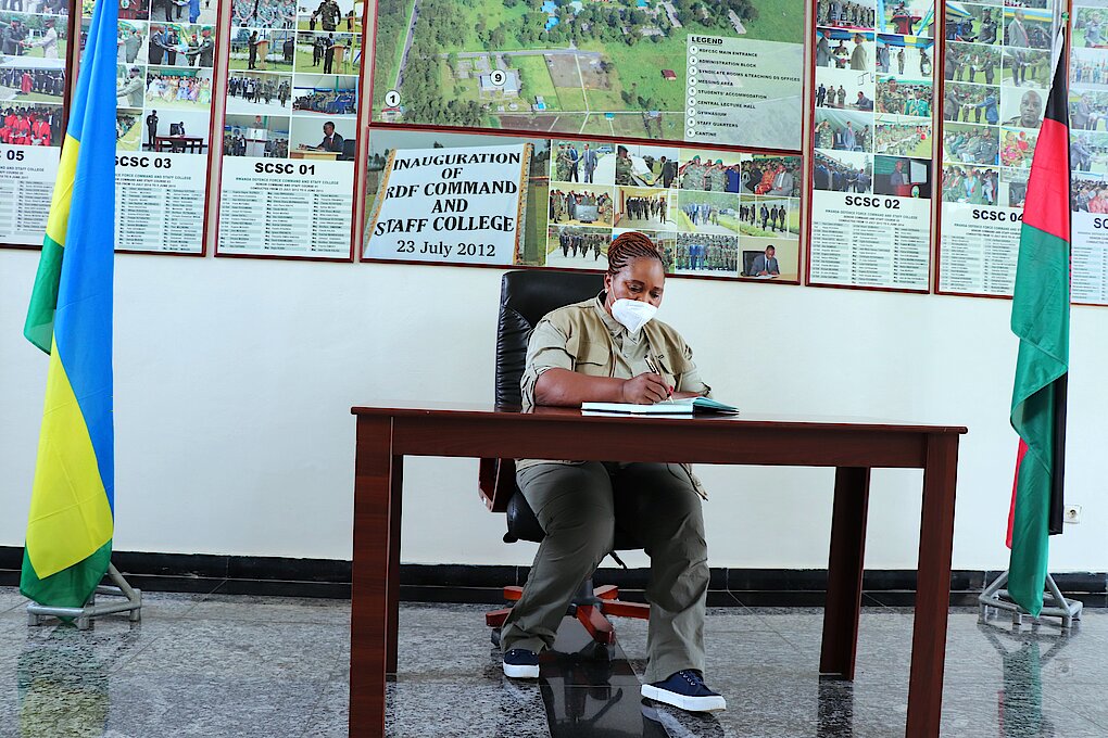 The Malawi Deputy Minister of Defence, Hon. Jean Muonaowauza SENDEZA and her delegation including the Commander of Malawi Defence Forces Gen Vincent NUNDWE visited RDFCSC on 13 October 2021 and was conducted to a guided tour around the College. The delegation was also accompanied by the RDF Chief of Defence Staff (CDS) General Jean Bosco KAZURA. General NUNDWE briefly addressed the students of Senior Command and Staff Course 10 and urged the students to make good use of the conducive learning environment and acquire the necessary ideals that are central to uniformed service.