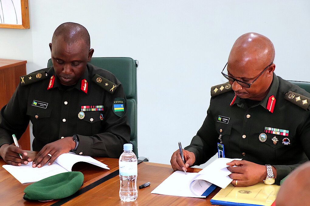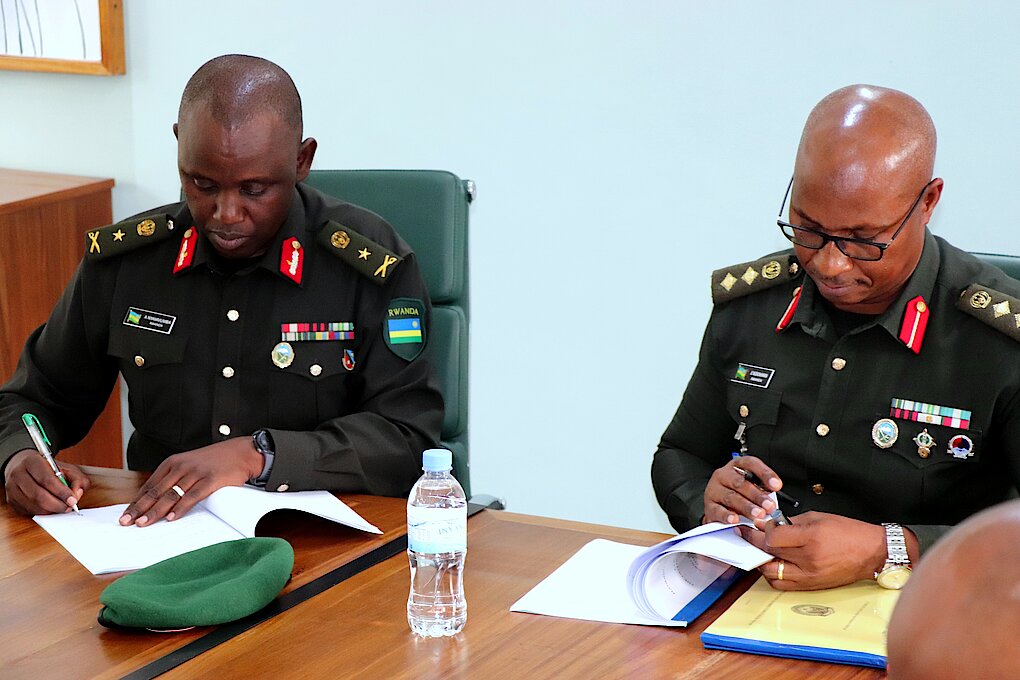 Deputy Commandant Col JC NGENDAHIMANA officially handed over office to Brig General A NYAMVUMBA as commandant.