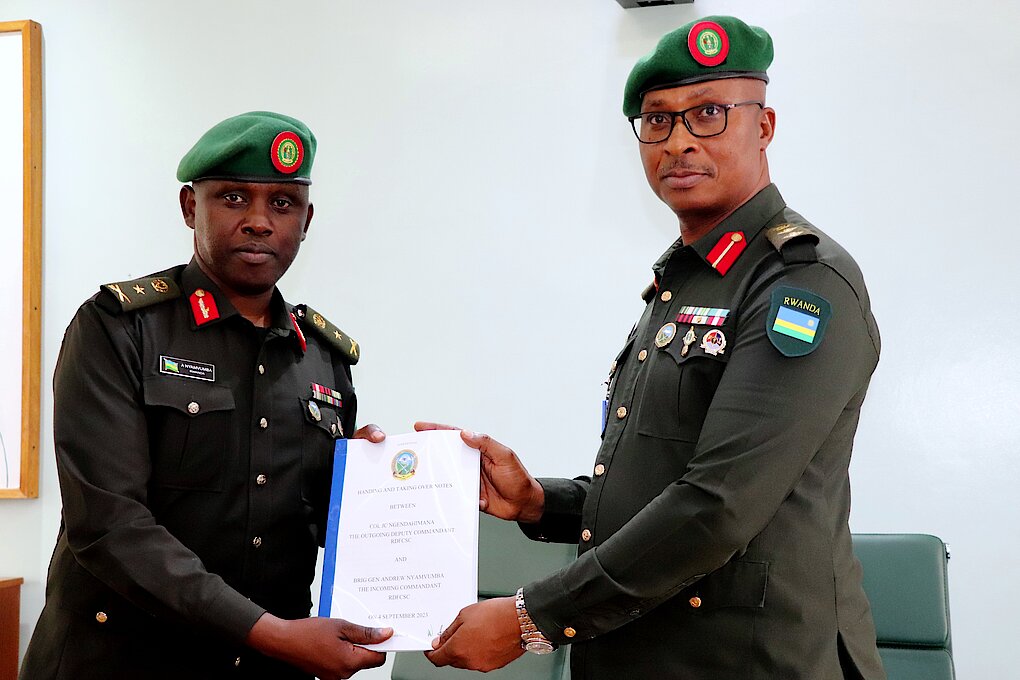 On 4th September 2023, a handover ceremony of newly appointed RDF Command and Staff College Commandant took place at RDFCSC. Brig General Andrew NYAMVUMBA takes over as the new Commandant of the College. The event took place in the College boardroom in the presence of some faculty members and College support staff.