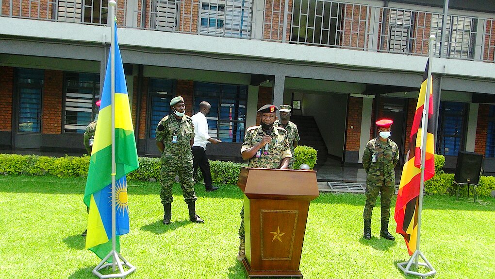 On 9 October 2021, the RDFCSC fraternity joined one Directing Staff (DS) and two students from the Uganda Peoples’ Defence Force (UPDF) to celebrate the Independence of the Republic of Uganda. The 3 senior officers are Lt Col DO MUNYUA (DS), Lt Col Jamadah MAWEJJE and Lt Col Wilfred Tokuma ADENGO are part of the exchange programme between the two sister Armies.