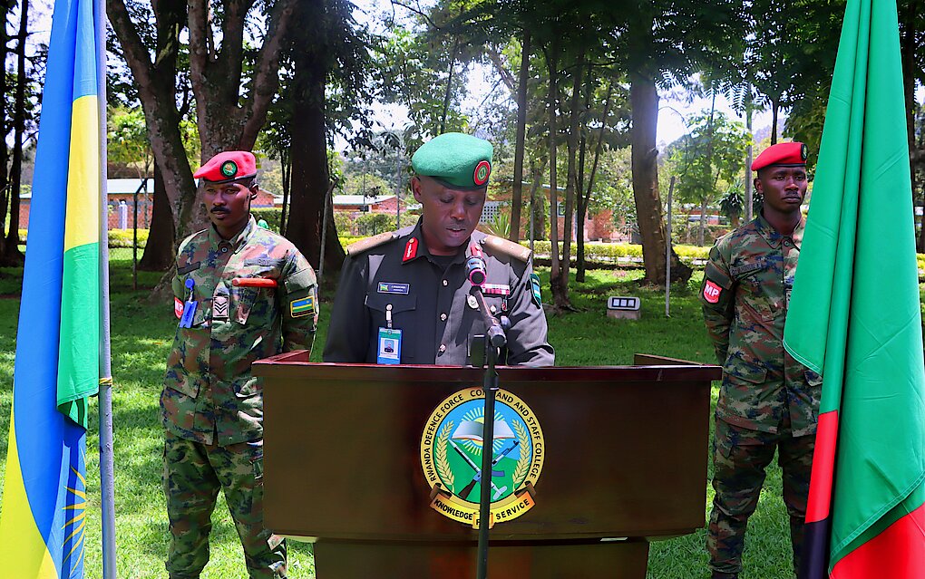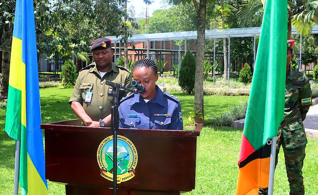 The Zambian student, Lt Col Cecilia Chitundu, addressed the gathering, highlighting the significance of Zambia’s 60th Independence Anniversary under the theme 60 Years Strong: Honouring Our Heritage, Embracing the Future. She reflected on the historic moment when the British colonial flag was lowered, and the Zambian flag was raised, symbolising freedom. She also expressed Zambia's gratitude to the Rwanda Defence Force, particularly the Command and Staff College, for the enduring tradition of hosting military students and fostering lasting partnerships.