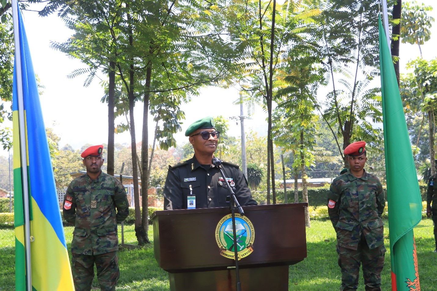 I cannot conclude without highlighting the strong bonds of brotherhood and partnership between the sister republics of Rwanda and Zambia, particularly the close defence cooperation between the Zambia Defence Force and the Rwanda Defence Force. This College has been a proud beneficiary of that collaboration, hosting 2 Zambian students each year since its inception. In turn, many senior officers of the RDF, including the current CDS, have received training in Zambia.