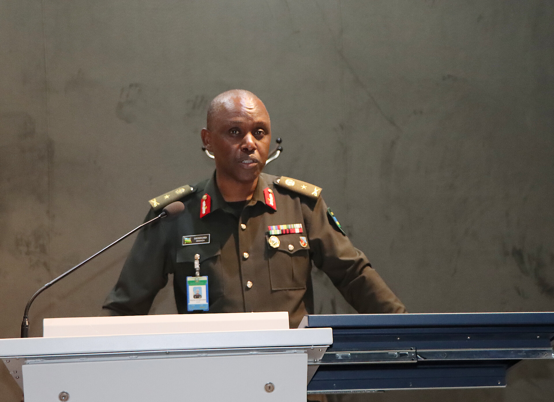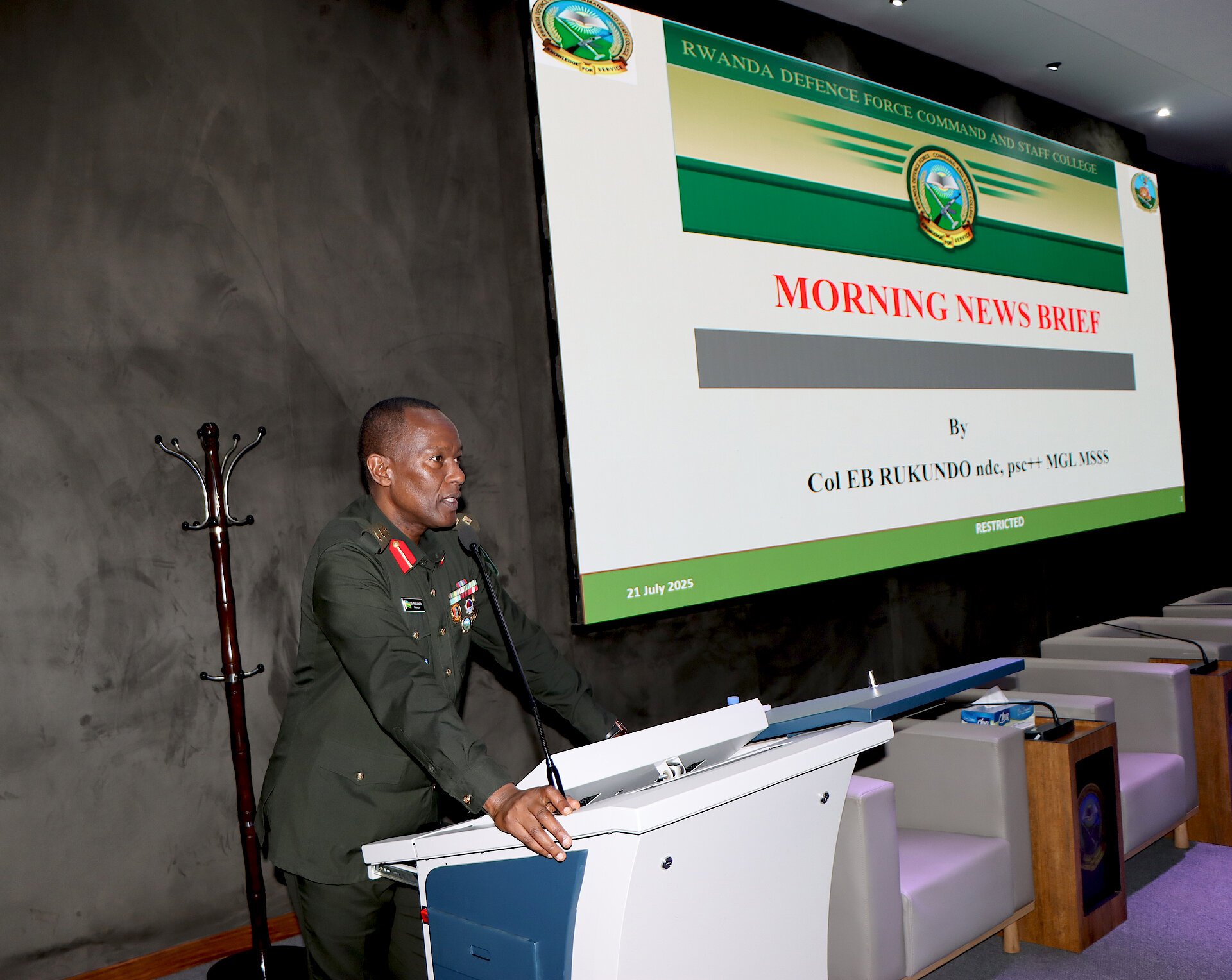 Col E RUKUNDO, Course Coordinator of the Senior Command and Staff Course giving his brief.