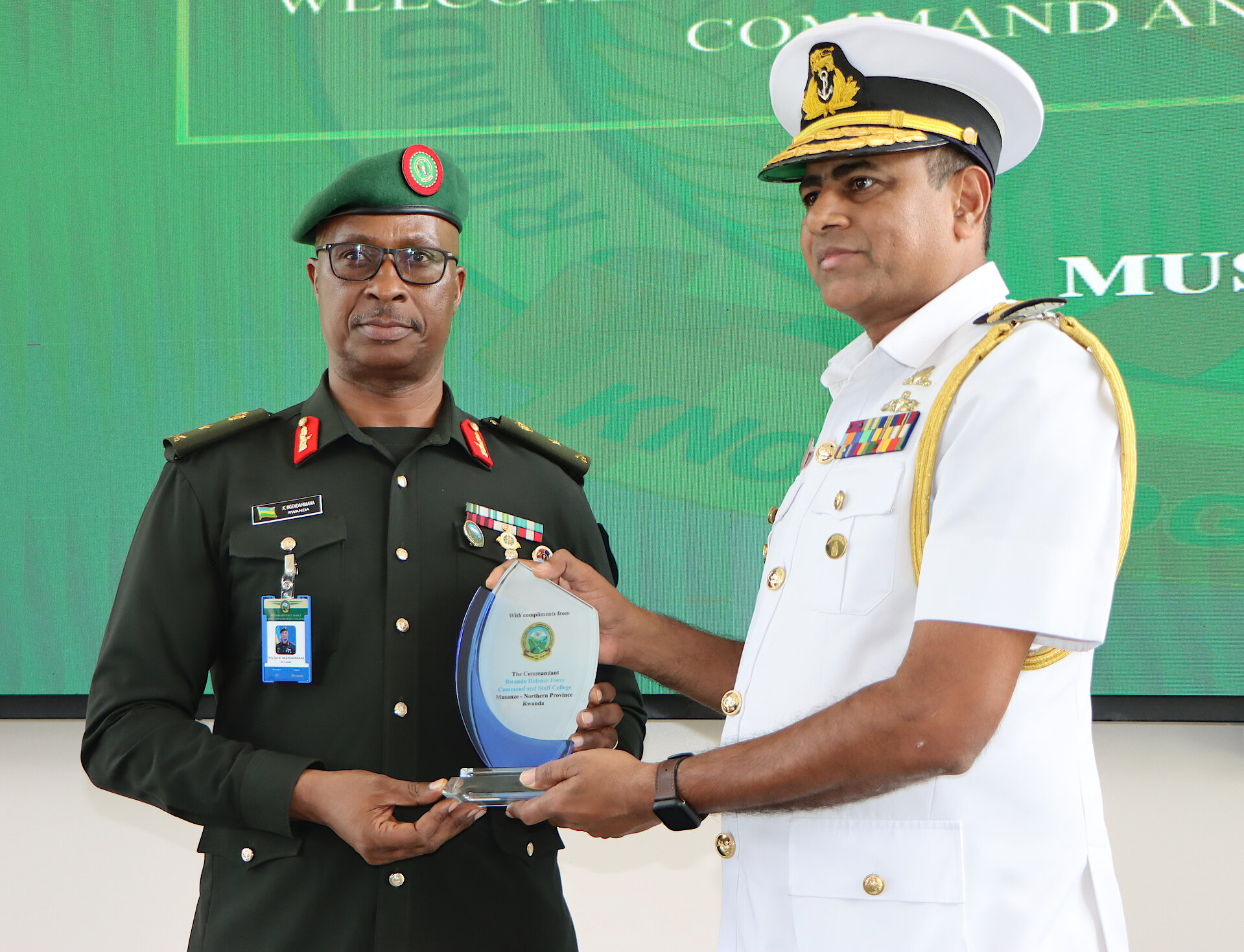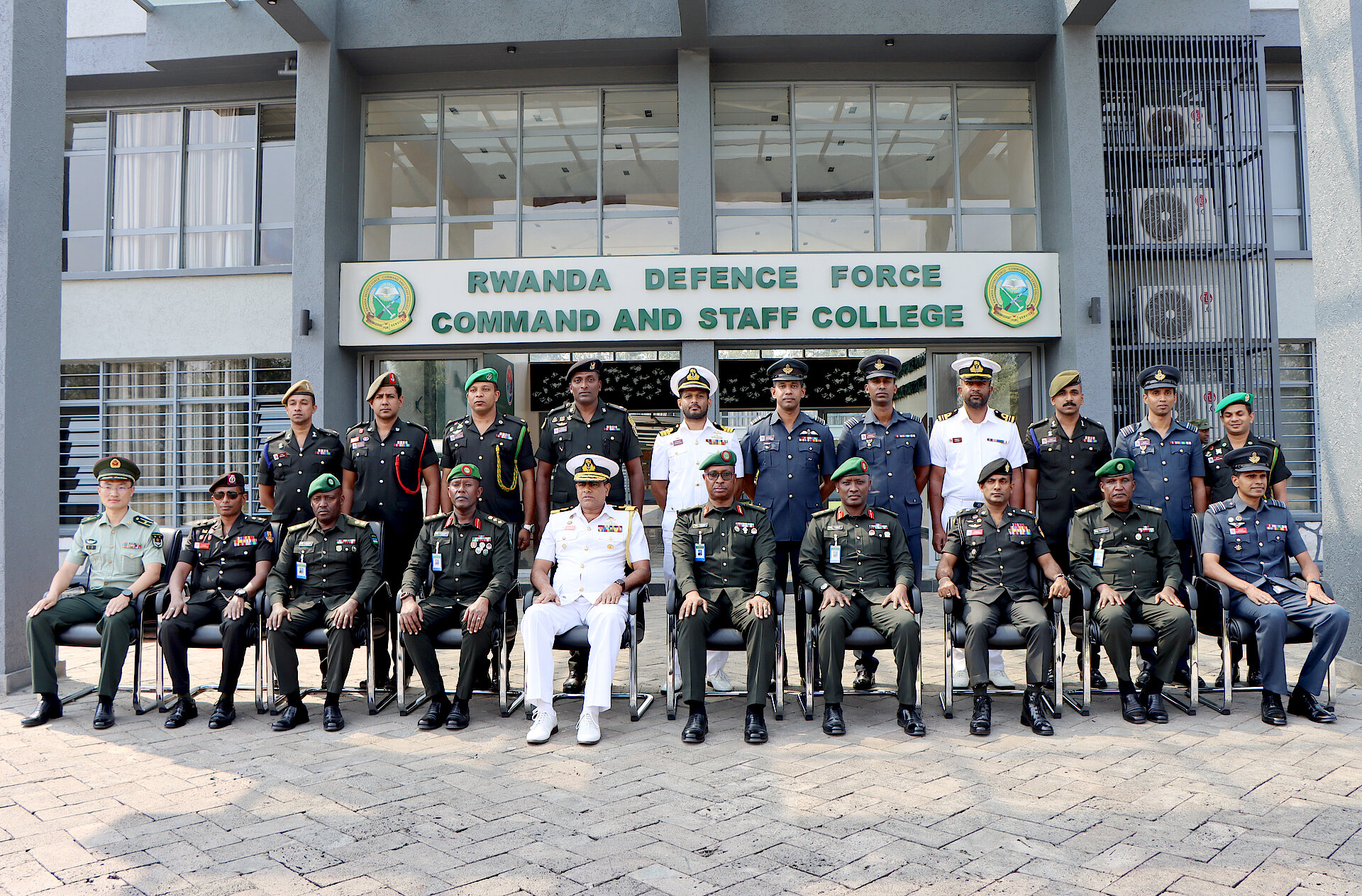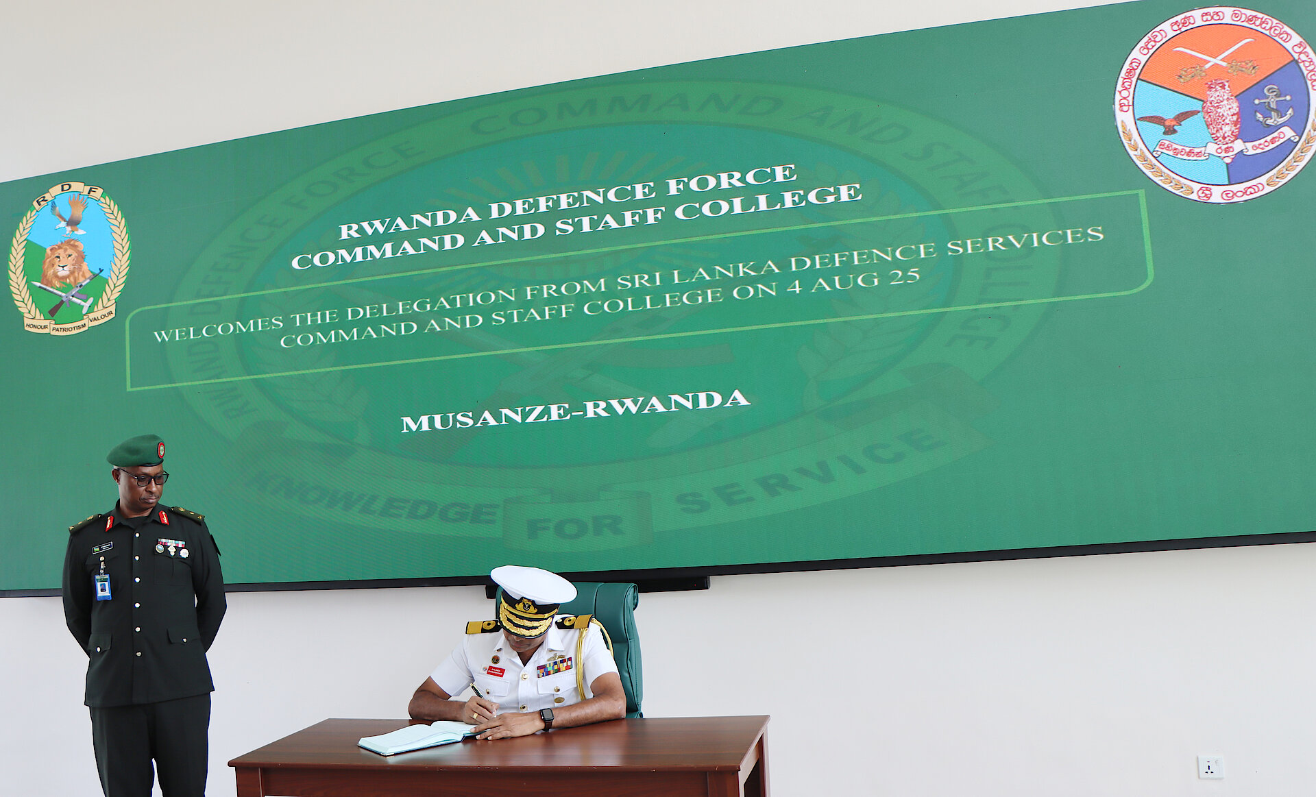 A delegation of senior officers, comprising 16 students and faculty members from the Sri Lanka Defence Services Command and Staff College (DSCSC), led by Commodore (Brig Gen) Dissanayake Mudiyanselage Nalinda Presad Dissanayake visited the Rwanda Defence Force Command and Staff College (RDFCSC). The visit was part of a study tour to Rwanda from 28 July to 08 August 2025; the purpose of their tour was to gain insights into Rwanda’s socio-economic development, the structure and operations of the Rwanda Defence Force.