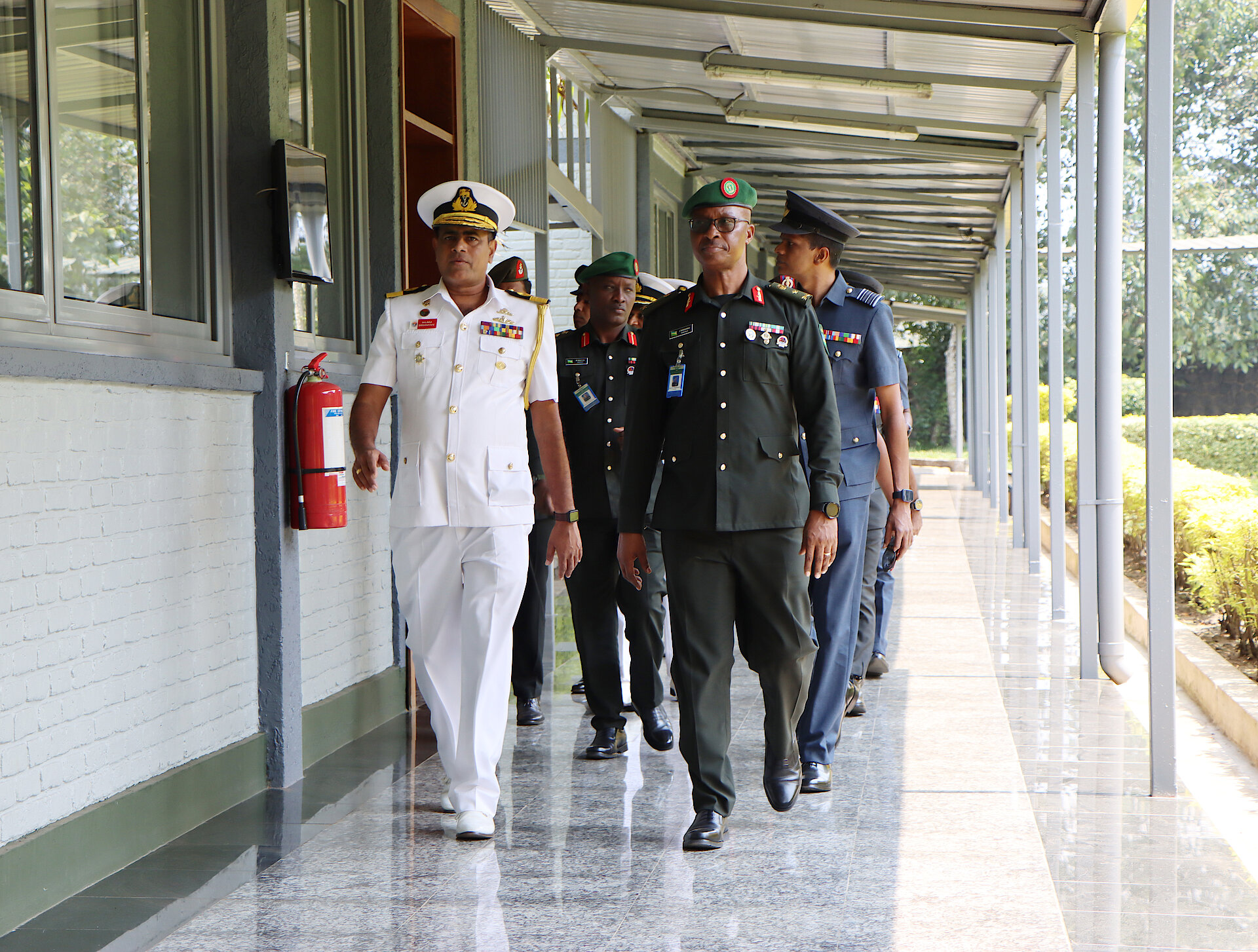 In his speech, he said, “On behalf of the Commandant who is outside of the College on official duties, the entire RDFCSC fraternity, and indeed on my own behalf, it is our pleasure to welcome you Commodore Sir, and your delegation to RDFCSC. I also take this opportunity to thank you for once again choosing to visit our College 7 years after your last visit in Aug 2018. This is a strong indication that your College still keeps the desire benchmark and cooperates with our own College, and gets acquainted with our programmes, what we do, and what we envisage to do, so that we both continue to benefit from sharing our experiences, knowledge, and best practices. Your visit today is even more meaningful as it takes place in the aftermath of our College visit to Sri Lanka in February this year, where our students of SCSC 13 immensely benefited from the rich programme your Defence HQ had prepared for them. These continued exchanges and partnerships are indeed very much needed to enrich our respective students’ perspectives on many issues bordering on security and strategic studies.”