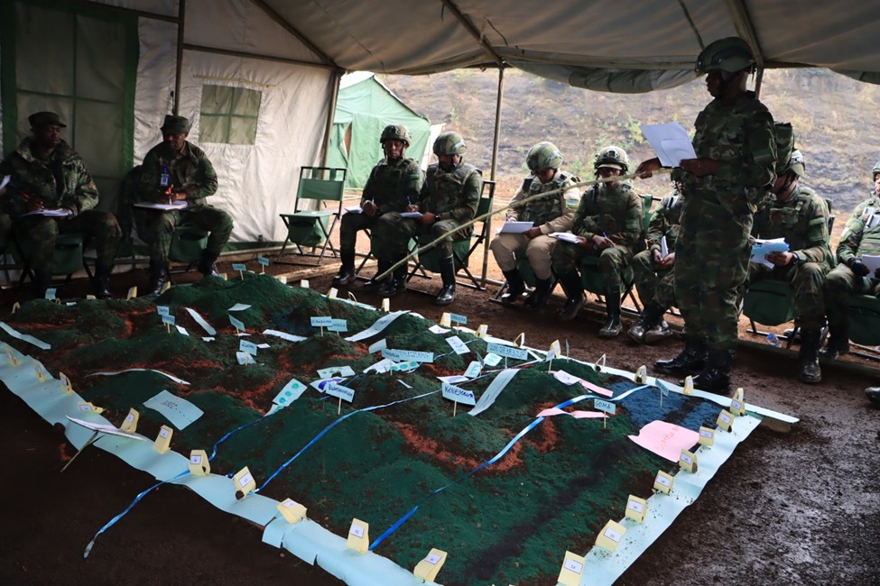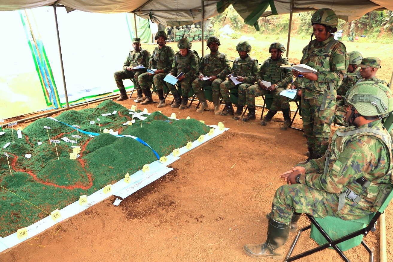 The last but not least was Ex Offensive Operations TEWTs, nicknamed HASHYA UMWANZI which was conducted in KIREREMA general area, from 22 Aug to 10 Sept 2025. The Ex was set at Bde level, where the students practiced as Bde Gp Comdrs & Staff. Therefore, the Ex focused on exercising the students in planning & conduct of Offensive Ops in a maneuver approach setting at Bde Gp level. The exercise was a Red Ink Correction (RIC) that contributes to the students’ development of individual understanding of ops through the study of a Bde Offensive battle context.